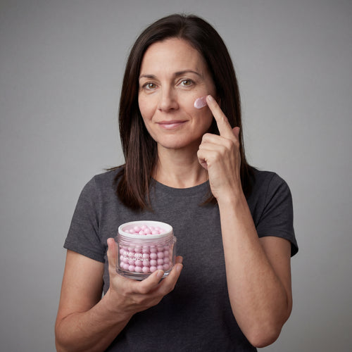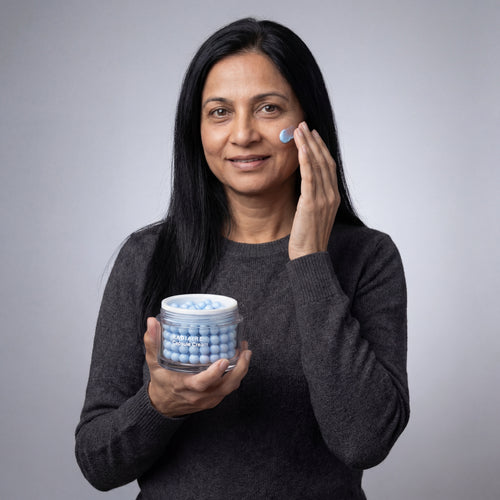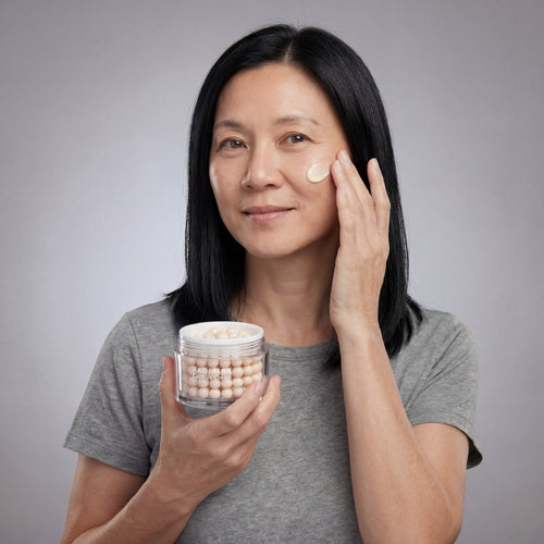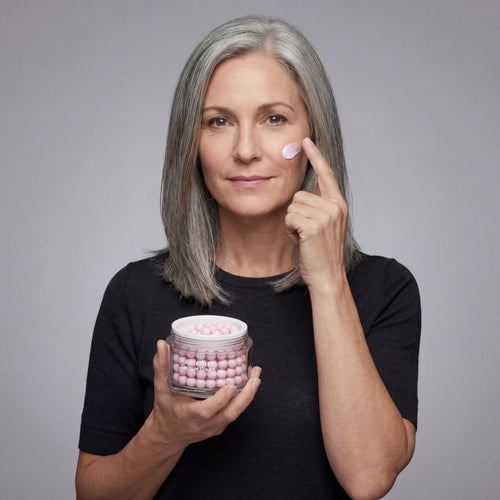 Each jar contains thousands of encapsulated actives you can actually see. The encapsulation technology controls how deeply ingredients penetrate, preventing the "leaking" that causes inflammation and stinging in mature skin. Watch them dissolve. Feel them absorb. Know they're working.